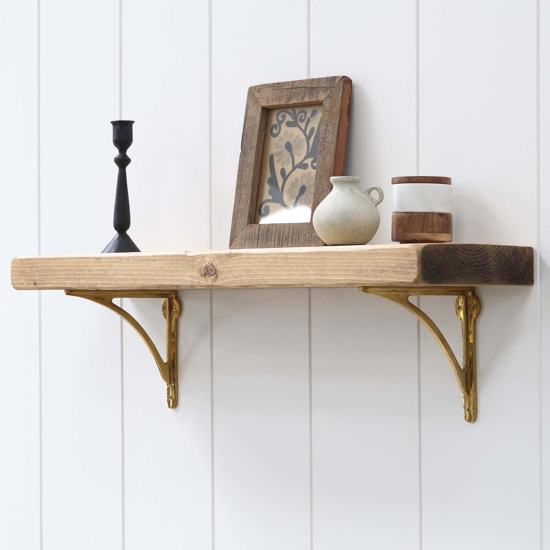 Brass Bracket Wooden Shelf