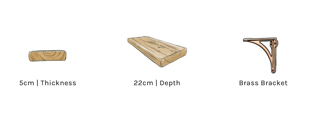 • Brass Shelf Brackets- Shelf lengths 150cm & above are supplied with 3 brackets rather than 2 for extra strength.