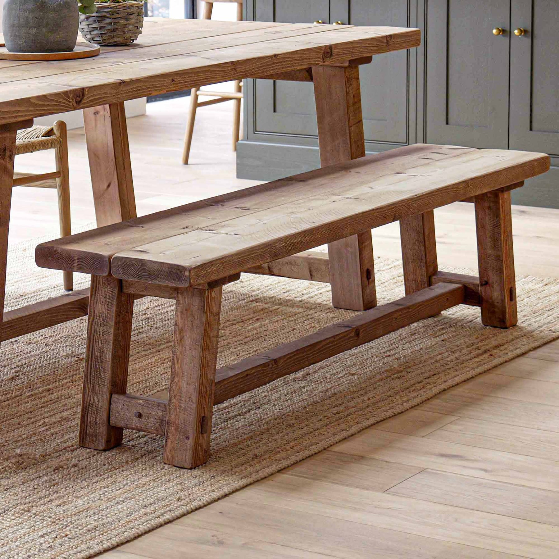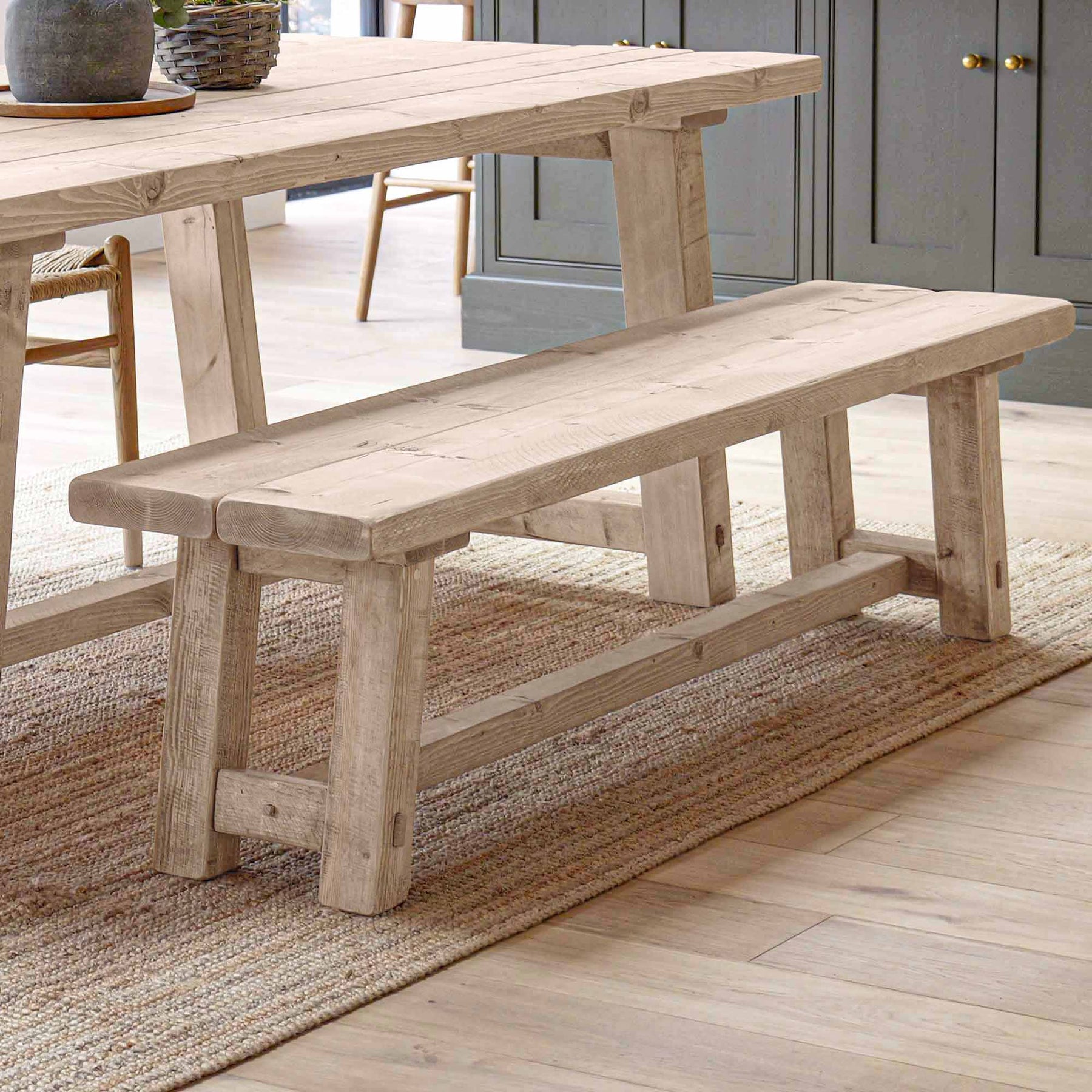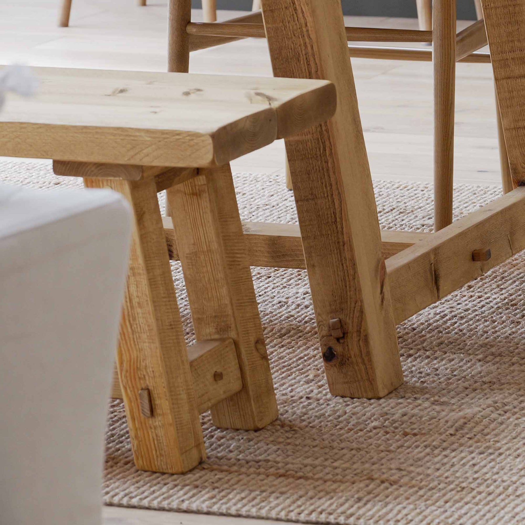 The solid timber leg design provides strength and stability while keeping the overall form clean and understated. Rustic details are left visible by choice, giving every piece a sense of individuality without compromising on balance or use.